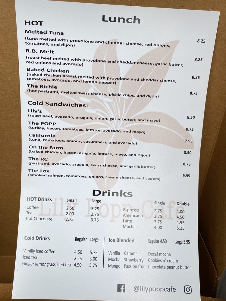 Highlights include the renowned breakfast bagel sandwiches, with the Canyon Special and RB Melt sandwich standing out as favorites. They also cater to diverse preferences by offering outdoor seating, wheelchair accessibility, and even dog-friendly areas, all while maintaining a commitment to sustainability with plastic-free packaging and reusable tableware. Pair your meal with an exceptional cup of coffee or a refreshing iced tea. Don’t miss the chance to experience the warmth and flavor that LilyPopp Café has to offer!